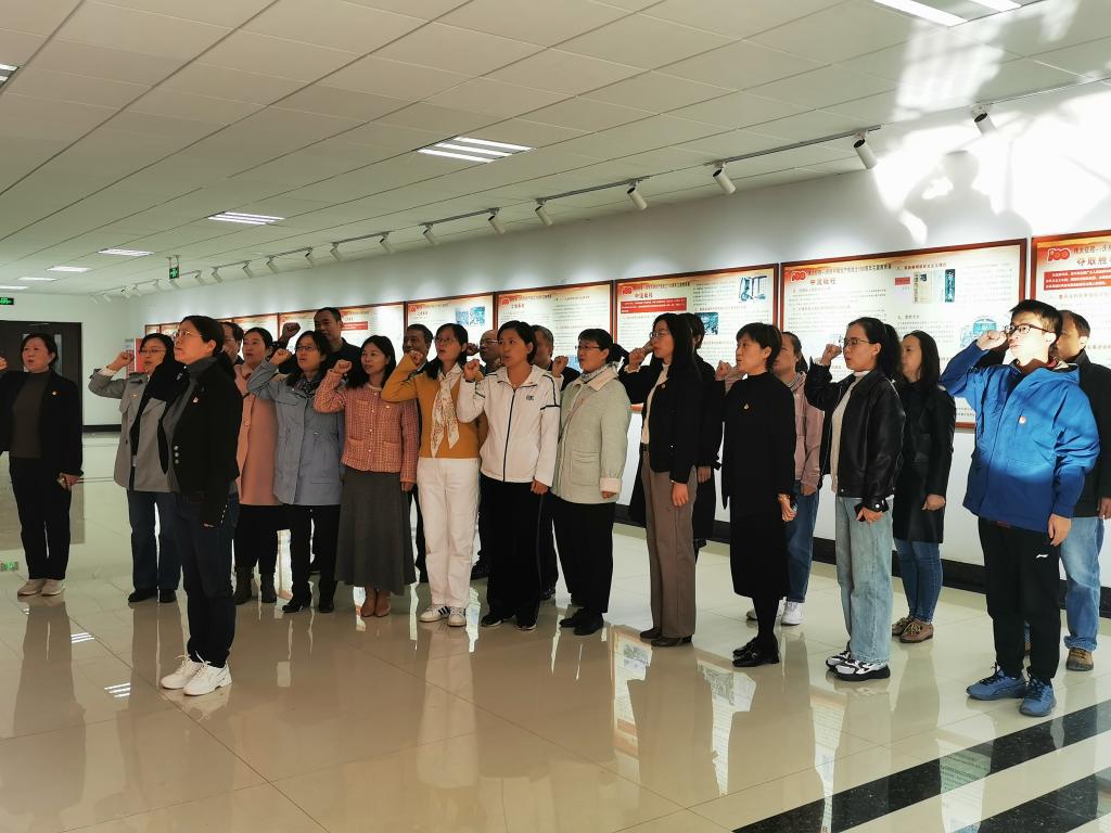 漫步信仰长廊,追随先辈的足迹,用心感受党的峥嵘岁月。文公司教师党员佩戴党徽,整齐列队,神情庄重地举起右手,面向信仰长廊的入党誓词墙庄严宣誓。“我宣誓,我志愿加入中国共产党,拥护党的纲领,遵守党的章程……永不叛党。”铮铮入党誓词响彻在信仰长廊,既是对二十大胜利召开的期盼,也表达了教师党员传承红色基因、时刻不忘初心和永远奋斗前行的决心。重温入党誓词,就是要激励大家不忘初心、牢记使命,坚定“一心向党”的忠贞信仰,坚守“一心为教”的赤子情怀。宣誓活动结束后,教师党员共同参观光荣党史历程展览,汲取精神力量。
