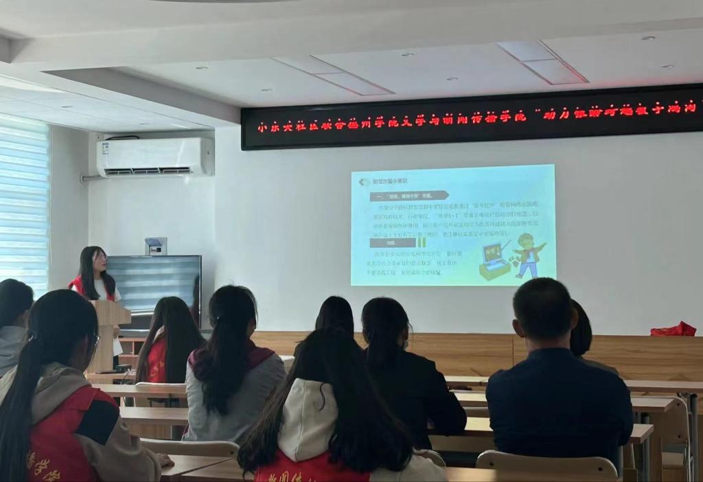 随着数字化时代的迅速发展,老年人群体由于对网络知识了解不足,常常成为网络诈骗的主要受害者。为了增强这一群体的网络安全意识,了解和防范网络诈骗,保护他们的财产安全,5月10日,文学与新闻传播公司青年志愿者走进小东关社区开展“关爱长者心,筑牢反诈墙”助力银龄跨越数字鸿沟社会实践活动。