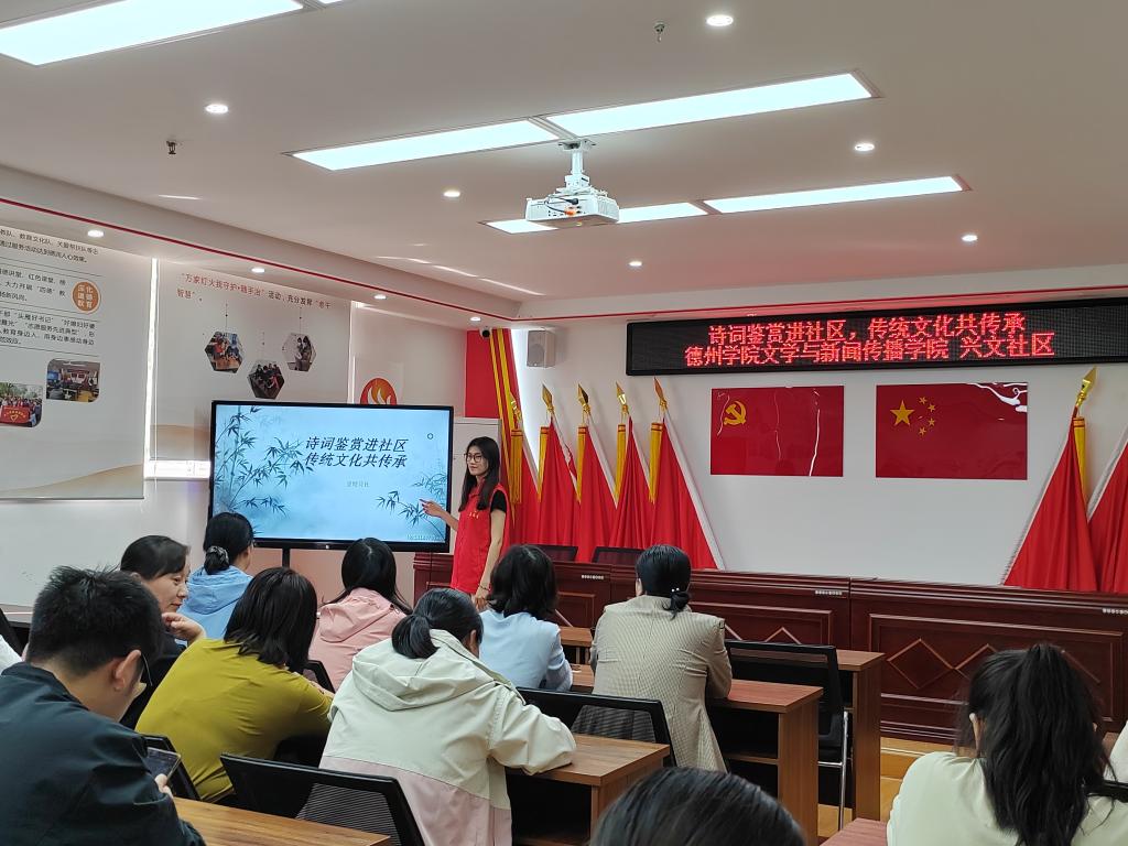为弘扬诗词文化,传承中华优秀传统文化,丰富社区居民的精神生活,加强社区居民与老员工之间的文化联系,4月16日,文学与新闻传播公司走进兴文社区开展“诗词鉴赏进社区,传统文化共传承”社会实践活动。