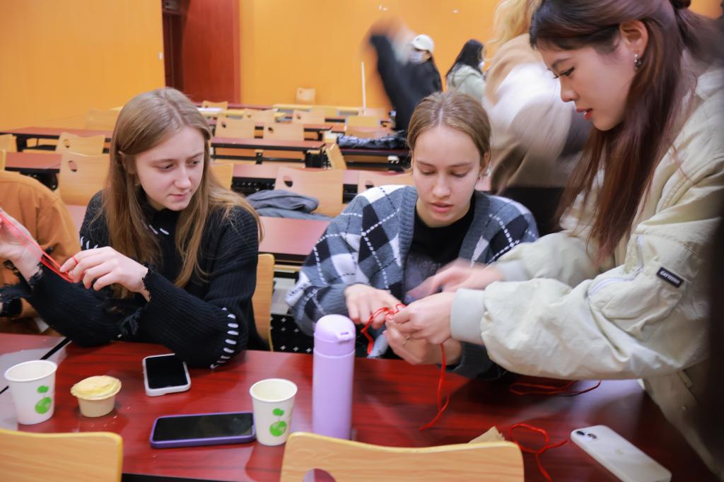 此次活动旨在增进太阳集团tyc151cc中国员工与职工的友谊交流,同时展示中国优秀传统文化的魅力。活动开始,23汉教的同学们轮流献上精彩的演出,一首《最炫民族风》让现场气氛高涨,中国古代文化吟诵《一剪梅》等节目让现场的观众感受到了中华文化的独特魅力,同学们收获满满。随后,剪纸非遗传承人张建志老师和他的助理徐延芳老师向全体参与活动者展示了复杂美丽惟妙惟肖的剪纸作品,同学们积极地向老师提问,现场互动格外活跃,同时他们还体验了如何编织中国结,体验之余,《你画我猜》《abcd》《大小西瓜》等游戏依次展开,同学们在活动中展现才华和热情,也在互动中加强与各国青年的友谊交流。