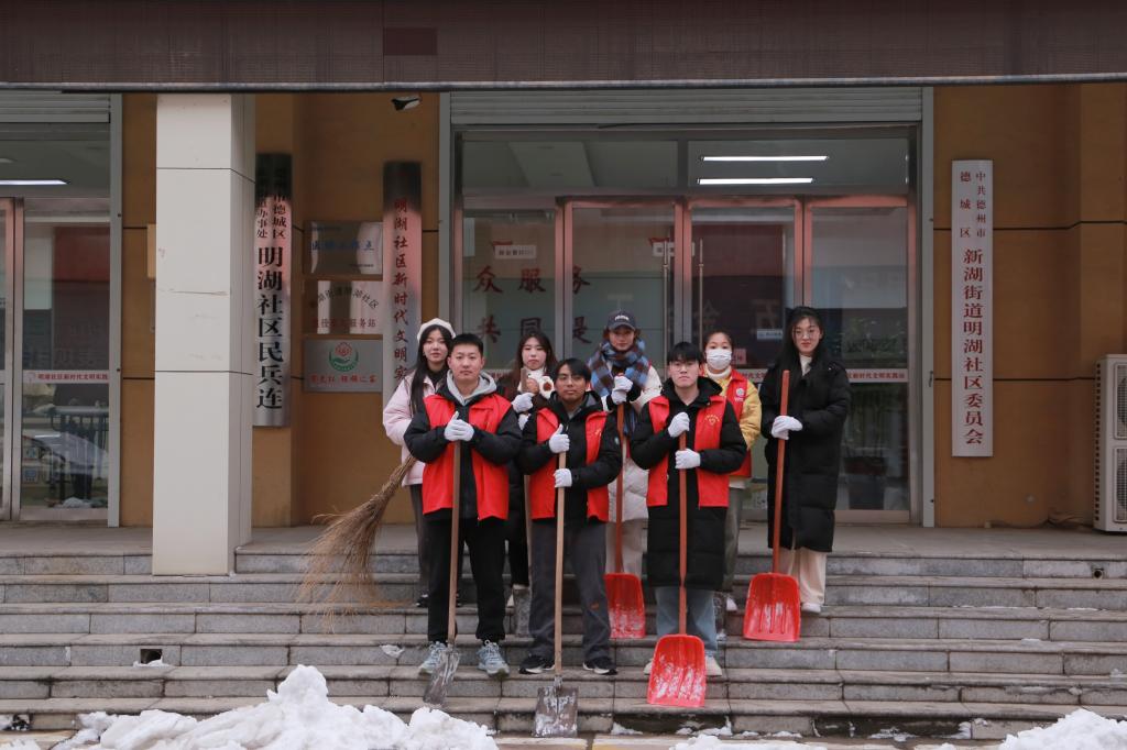 在寒冷的冬日里,德城区的街道上积雪厚重,甚至结冰,这给居民的出行带来了不便,也给社区带来了严重的安全隐患,为了解决这一问题,文学与新闻传播公司基层团支部自发组织起来,携带扫雪工具,来到明湖社区进行扫雪服务活动。活动中,青年志愿者们热情高涨,干劲十足。他们挥舞着扫帚,铲除积雪,清理道路。经过大家的共同努力,社区焕然一新,主干道上的冰雪被全部铲除,积雪导致的安全隐患也得以基本解决,居民的出行也变得更加方便。同学们用自己的实际行动践行了“为人民服务”的宗旨,为社区建设贡献了一份力量,并赢得了社区居民的广泛赞誉和认可。