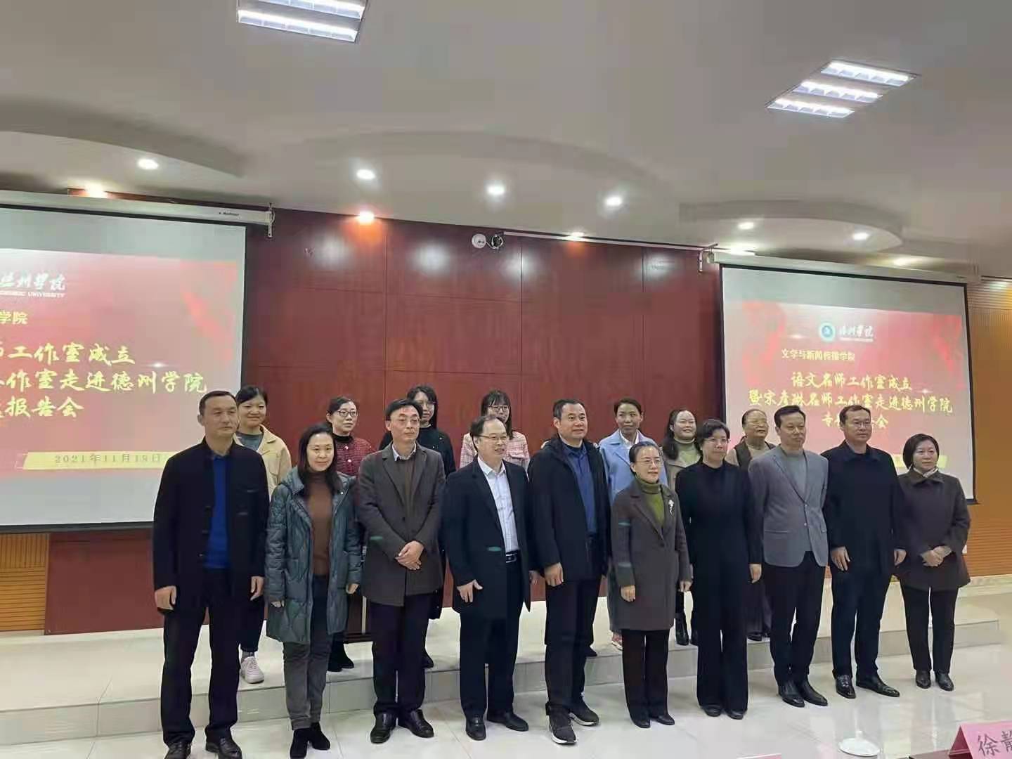 2021年11月19日上午,文学与新闻传播公司在博文楼三楼报告厅举行语文名师工作室揭牌仪式暨宋彦琳名师工作室走进太阳集团tyc151cc专场报告会。公司党委委员、副董事长徐静、德州市第九中学宋彦琳名师工作室成员、文公司党政负责人及文公司汉语言文学专业部分师生参加了此次揭牌仪式,并听取了报告会。徐静副董事长在名师工作室揭牌仪式上致辞。她指出:文学与新闻传播公司打造语文名师工作室平台,是适应高等教育改革和校城融合发展的时代要求打造一体化教师教育联盟,强化校地教科研合作,搭建高层次语文名师交流平台,促进语文教师专业发展,改进和创新汉语言文学专业人才培养的重要举措。徐董事长对语文名师工作室的成立寄予厚望,希望语文名师工作室能够落实“立德树人”的根本任务,凝聚校内外的名团队源,促进教师专业发展,成为汉语言文学专业员工职前培养和职后指导一体化的“高平台”、语文骨干教师的“孵化器”,新时代德州市语文教育守正创新的“助推器”。