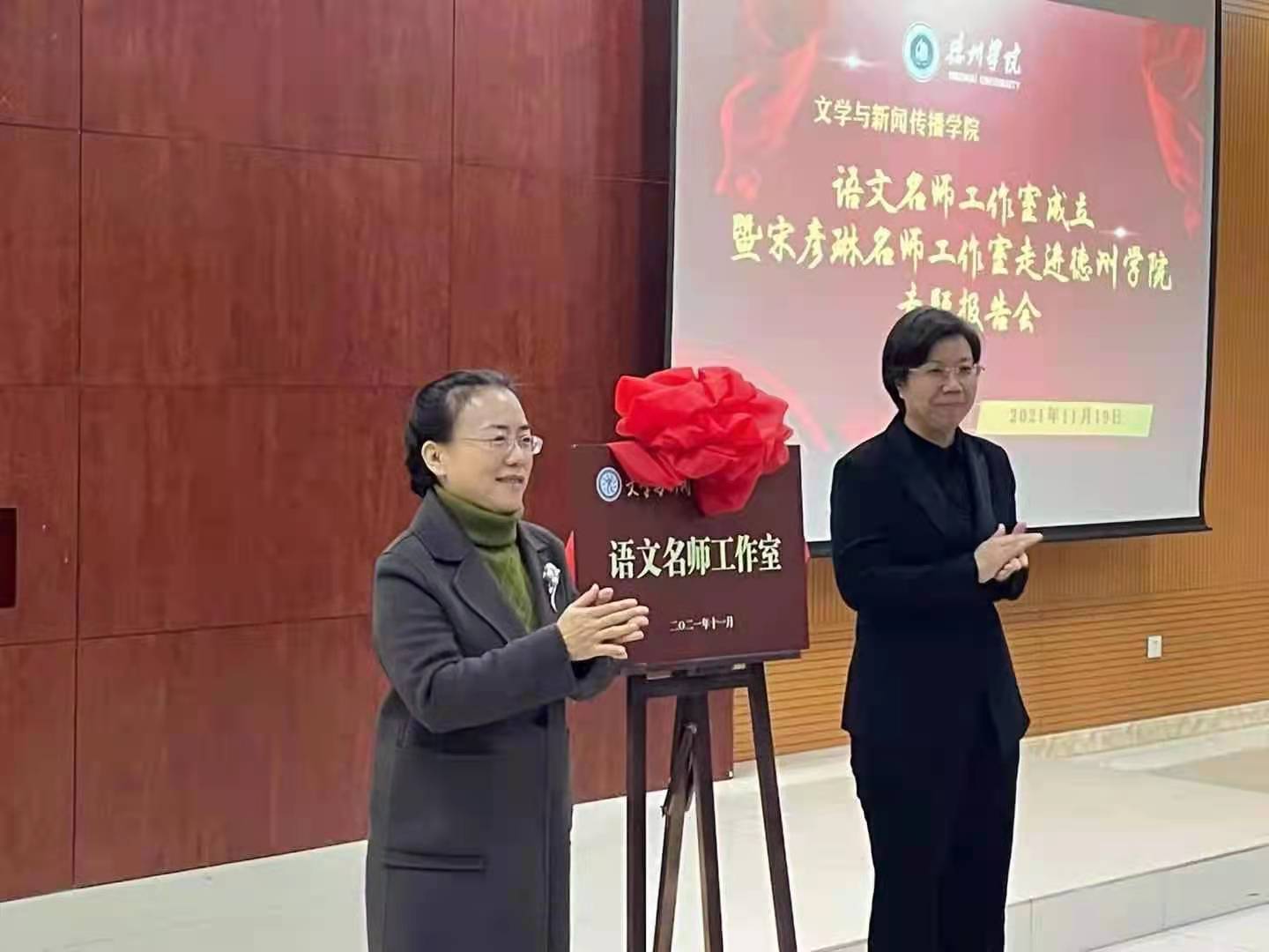 随后,徐静副董事长与德州市第九中学宋彦琳董事长共同为文学与新闻传播公司语文名师工作室揭牌。宋彦琳名师工作室为在场师生带来了精彩的语文课评课和专家报告。