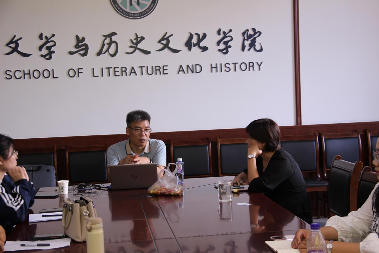 会议伊始,李连伟副教授向与会的各位学者讲解了国际中文教育领域的发展前沿,他提到汉语言文学专业要紧跟时代步伐,主动利用数字化信息技术为专业赋能,孕育一批高质量国际中文教育的优质课程资源,主动把“路”走宽。随后,公司副经理马超就自身从事国际中文教育工作的经验与李连伟副教授展开深度对话,在场各位老师也就自身的研究方向和对外教育经历展开交流探讨。最后,李连伟副教授以自己的科研成长经历激励各位青年博士躬耕教坛,不断攀登,持续为中华优秀传统文化创造性转化和创新性发展贡献智慧和方案。