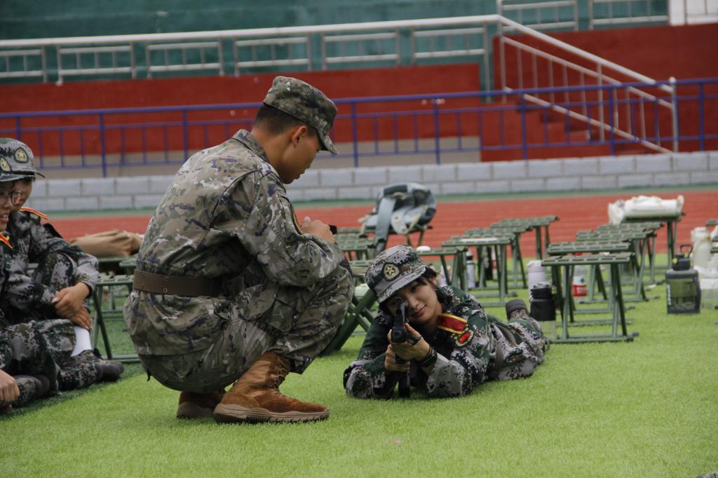 清晨的操场笼罩在淡淡的薄雾之中,朦胧的阳光如纤细的金线穿过雾霭,洒在整齐列队的同学们身上。军训第一课就是整理着装,军装是庄严的,穿上军装就意味着一种责任。文院学子穿着整齐的服装,身姿挺拔,如同一棵棵傲然挺立的青松,精神抖擞地站立着。在教官的指挥下,他们动作整齐划一,口号声震天动地,彰显着军训的风采。他们整齐的队列,如同一座座坚固的堡垒,展现出强大的凝聚力和团队精神。尽管天气炎热,但同学们的热情不减,以最好的精神面貌参加各种项目的训练中。稍息、立正、正步走、齐步走队列训练顺利开展。每一个动作都挥洒着青春的汗水,每一次呐喊都彰显着他们的决心。