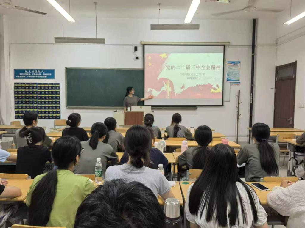 党的二十届三中全会是在以中国式现代化全面推进强国建设、民族复兴伟业的关键时期召开的一次十分重要的会议。全会审议通过了《中共中央关于进一步全面深化改革、推进中国式现代化的决定》。党的二十届三中全会擘画了进一步全面深化改革时代蓝图,具有继往开来的里程碑意义。通过学习资料,学员们全面回顾了党的二十届三中全会的召开背景、主要议程及会议成果,各团支书结合资料内容,介绍了“一个总目标、七个聚焦、进一步全面深化改革的十四个重点领域”,带领学员重点学习了全会审议通过的《中共中央关于进一步全面深化改革、推进中国式现代化的决定》。不仅加深了学员们对全会精神的理解和把握,也激发了大家进一步学习研究的热情。