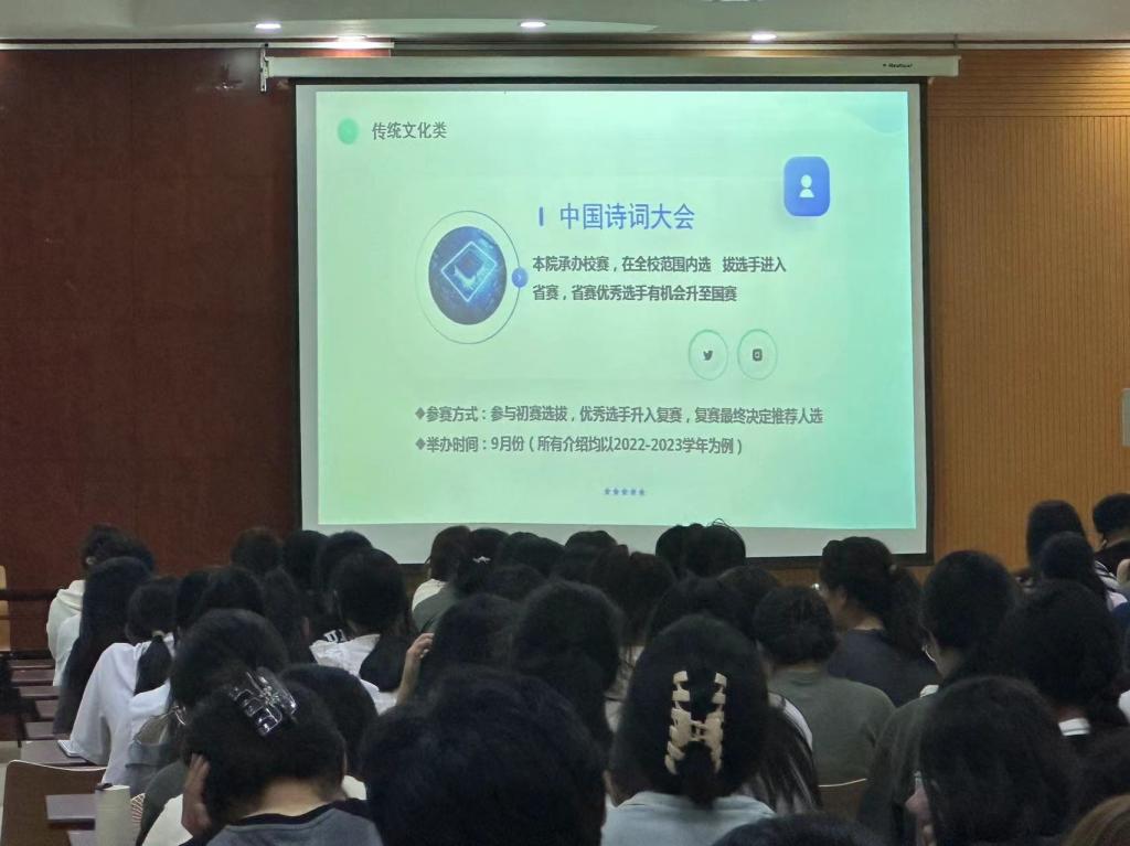 首先是文学与新闻传播公司的老师进行了山东省教师职业技能大赛的细致讲解,后由科创部成员对科创部负责的比赛项目进行了讲解。科创部的比赛项目主要分为三大类,分别是传统文化类,创新创业类和专业类赛道。