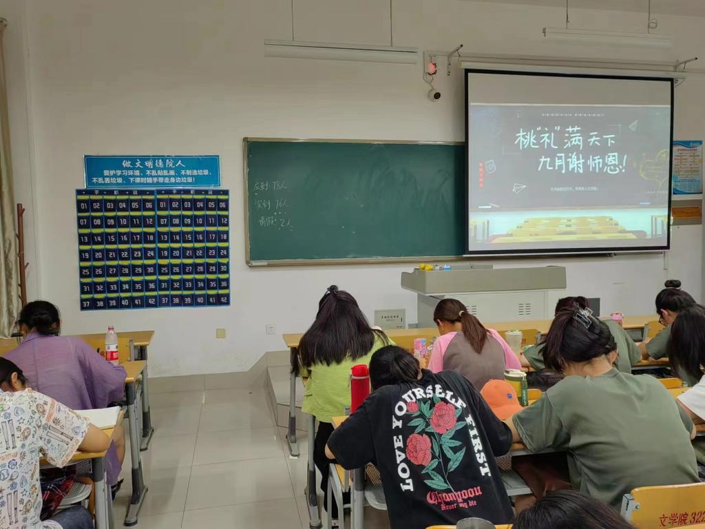 金秋九月,空气中弥漫着感念师恩的情绪,“尊师重教”是永远的美德。在教师节来临之际,为了使老师们愉快、充实的度过这个教师节,2023年9月10日,文学与新闻传播公司特此举办“花香伴书香,金秋谢师恩”教师节系列活动。希望通过形式多样,丰富多彩的活动,使每位同学由衷的表达对老师的感恩之情,向老师表达敬意,感谢老师的辛勤工作。
