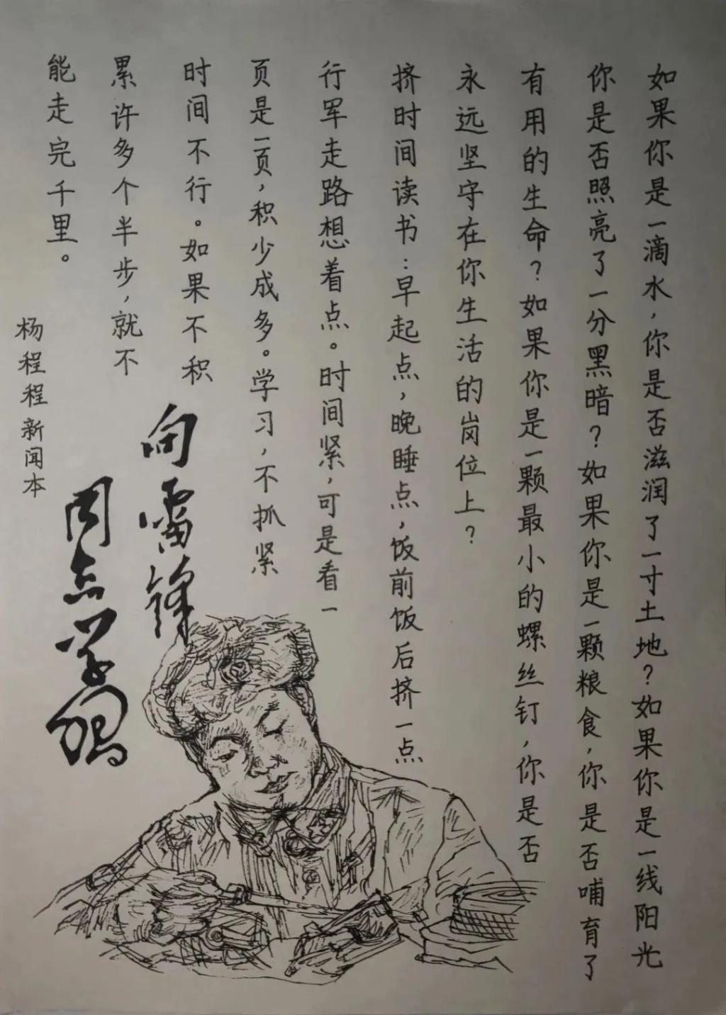 此次书法大赛可以为同学们提供展示自己的舞台,展现了同学们的能力水平,既加深了同学们对书法艺术的追求,又对雷锋精神有了更深刻的理解和体会,促进了雷锋精神的传承,是践行社会主义核心价值观的一次有力实践。