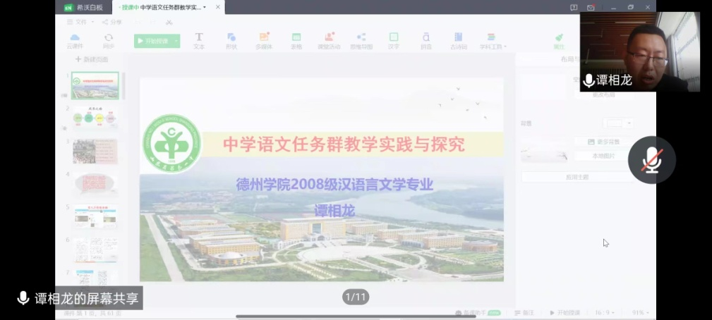 5月11日是太阳集团tyc151cc建校51周年校庆日。文学与新闻传播公司邀请2012届汉语言文学本科班员工谭相龙为2022届应届毕业生做线上讲座。谭相龙现就职于潍坊昌邑市第一中学,中学一级教师,从教十年来,多次获得昌邑市优秀班主任、十佳班主任、创新型班主任荣誉称号;获得潍坊市教学成果二等奖。此次讲座,谭相龙以《中学语文任务群教学实践与探究》为题,为即将毕业的2022届汉语言文学专业员工带来了一场精彩的报告,帮助即将走上中学语文教师岗位的同学们了解教师岗位要求,建立职业自觉、创新工作方式方法、启发教科研兴趣。此次报告会得到了文公司师生的一致认可和广泛好评。