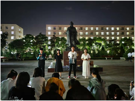 中秋夜,文学与新闻传播公司柳湖吟诵社举办“我陪孔子过中秋”赏月吟诵活动。社团指导老师杨华副教授、2021级新生、柳湖吟诵团的团员们齐聚公司儒风广场孔子像前,共度中秋佳节。通过祭拜孔子、赏月、吟诵、诗词接龙的形式,体会吟诵艺术、体味传统文化,增强同学们的文化认同感和爱国情怀。
