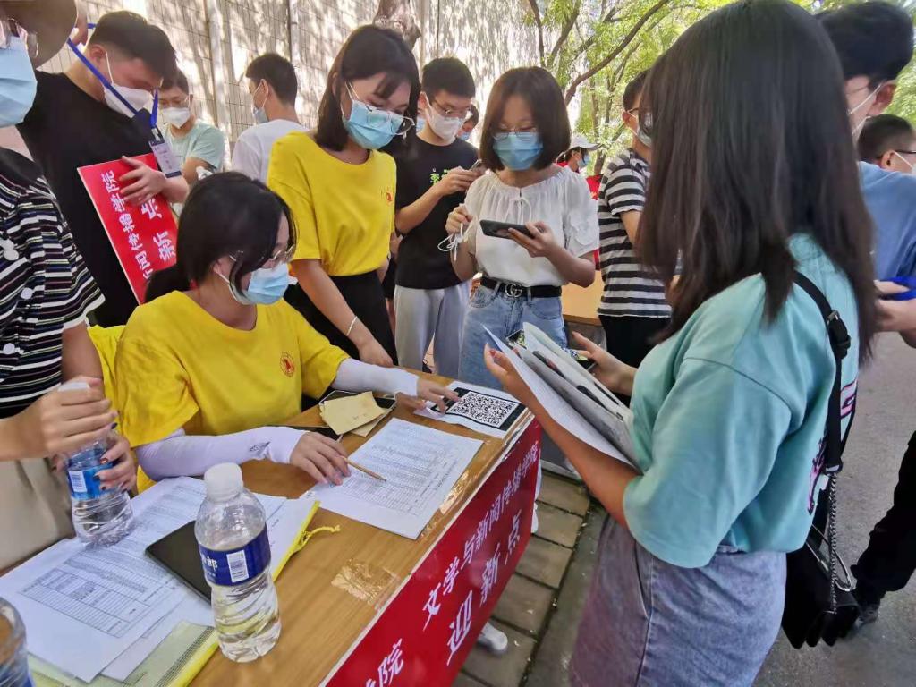 疫情防控形势依然严峻,为响应公司开学新生错峰分批次报到的要求,今年部分高年级同学提前返校,参与迎新志愿服务工作。迎新工作中,员工党员、入党积极分子积极带头,优秀团员切实发挥后备军作用,员工干部热忱服务,暖至人心。他们身穿黄色上衣,烈日炎炎下等待着每一位新生踏入德院校园,志愿者们细心地引导新生做核酸检测、买饭送饭,指引新生完成报到流程、为新生搬运行李、送新生进入明亮干净的宿舍。即使天气热,任务重,但志愿者们的热情从未消减。员工志愿者们身着黄色上衣,成为迎新站点最靓丽的风景线。