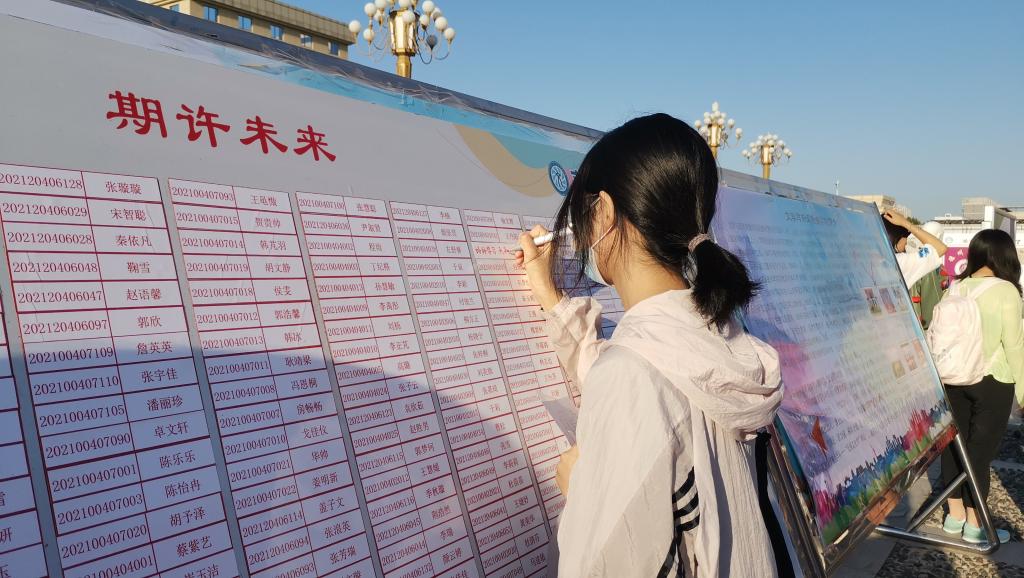 迎新点设立新生姓名墙,21级370名员工姓名、学号全部上墙,通过撕名牌的方式在报道当天摘走自己的专属铭牌,并在底板上留下自己的签名,去留之中,浮光跃金,感知公司和个体的牵绊。再者,根据疫情防控的要求, 文学与新闻传播公司也为迎新注入更多温情元素,为新生发放防疫大礼包,旨在让初入校园的员工感受到公司的温暖。另外,创造性的增加“描绘希望”互动环节,现场发放彩笔,新生可在防疫包上自由创作,未来由你书写,青春由你做主。