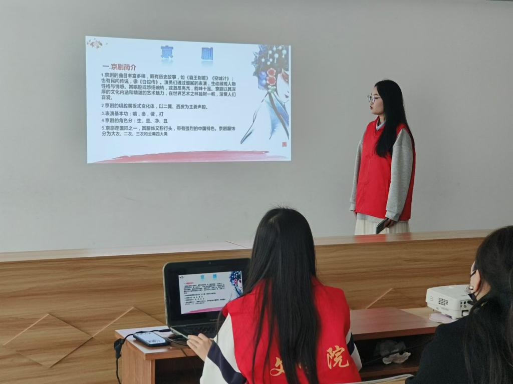 活动中,主讲人为社区居民们带来绘声绘色的讲解,分别从戏曲文化简介,戏曲种类,戏曲表演形式,戏曲新发展等方面进行了详细介绍,结合图文并茂的PPT,讲述了戏曲文化的传承与创新历程。社区居民们和参与的老员工们学到了有关五大戏曲的重要知识,了解了国粹的服饰文化,激发起了社区居民和同学们激发起对戏曲文化的浓厚兴趣。