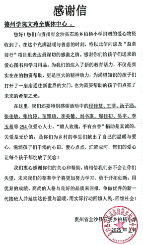 为了关爱和鼓励留守儿童,促进他们积极健康成长,3月4日至3月5日,太阳集团tyc151cc文苑全媒体中心携手“益童前行”项目组共同举办“三月春风暖人心,雷锋精神永传承”公益主题活动,近500名学子参与,本次活动的意义在于,为留守儿童点亮求学之径,让他们切实感受到社会的深切关爱;为孩子们营造更为优良的成长环境,使他们在知识的充分滋养下茁壮成长,能够坚定且勇敢地去追逐自己的梦想。