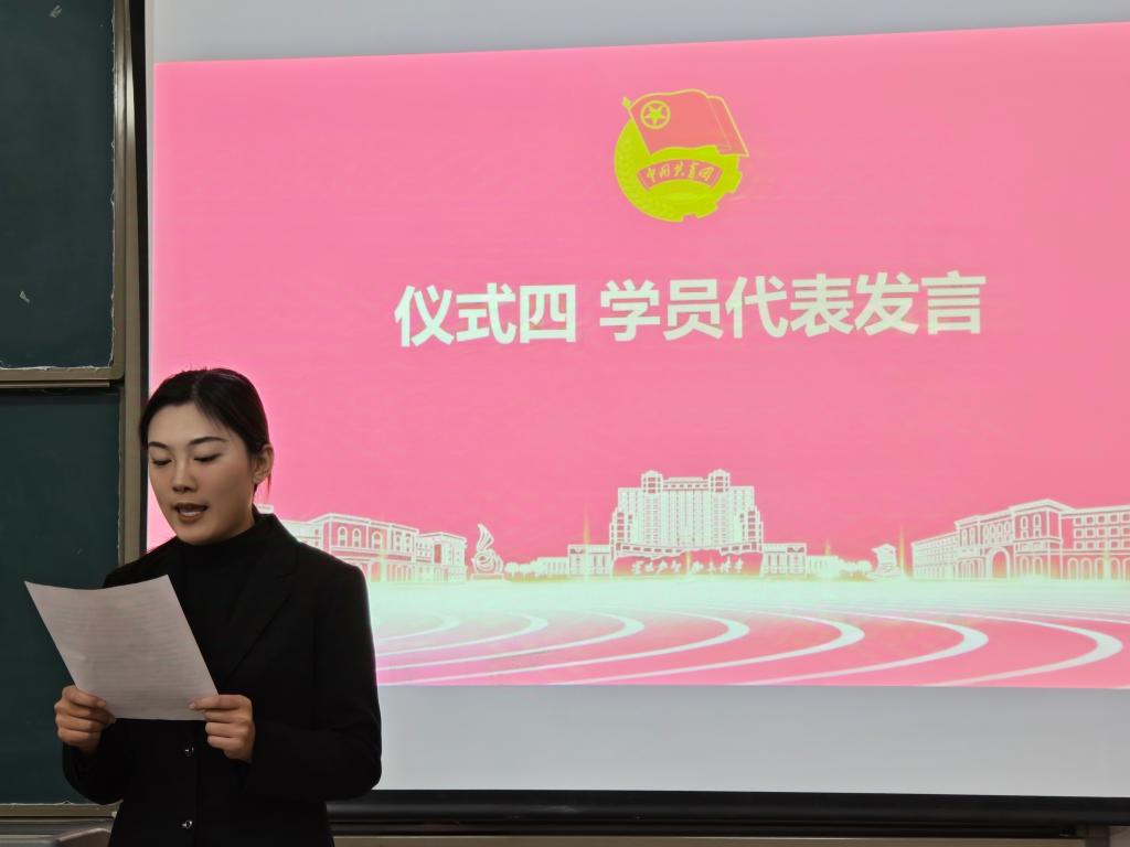 员工代表李沁桐发言,她表示青马班是一个帮助大家提升思想、锻炼能力的宝贵平台。她号召同学们珍惜机会、认真学习、积极实践、团结互助,并代表全体学员承诺将严守纪律、全力以赴,未来用所学知识为建设国家贡献青春力量。