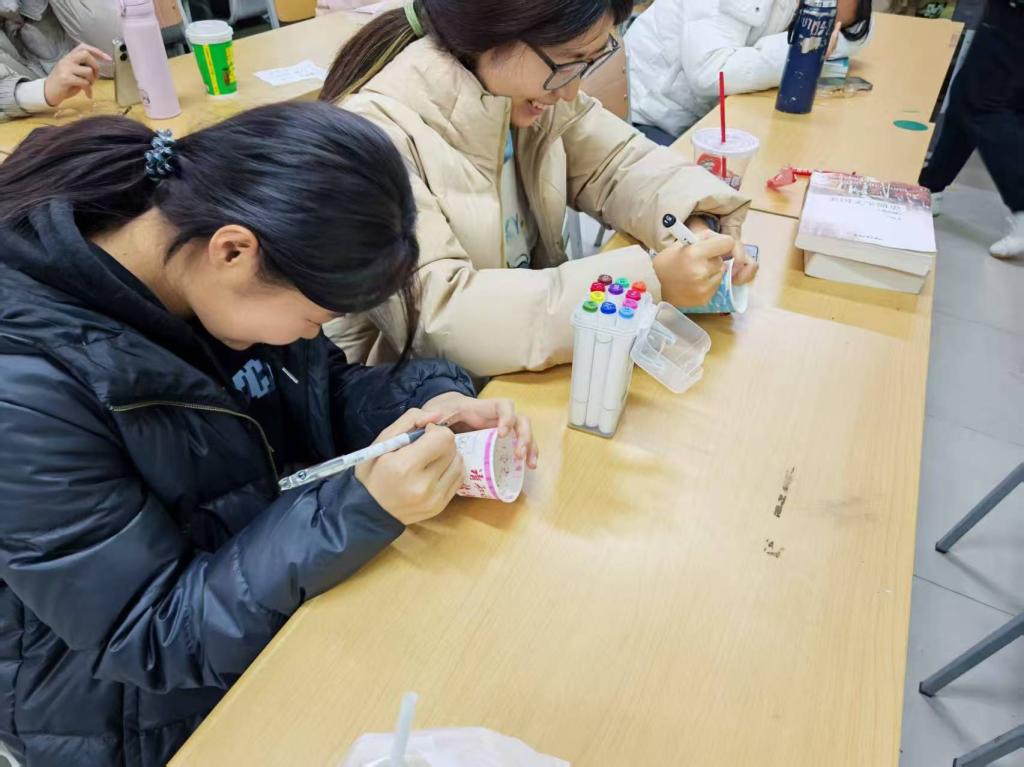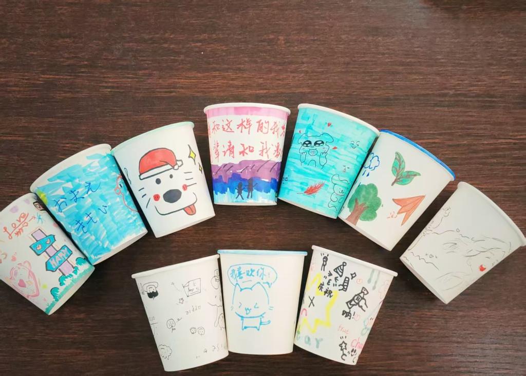活动伊始,负责人分发空白纸杯与彩绘工具,引导员工以“情绪色彩学”为灵感,用不同色调、笔触勾勒当下心境,将压力、喜悦等感受转化为专属纸杯画作。互动环节有序开展,员工手持原创纸杯画作进行交流,结合作品阐述创作心境与背后故事,在沟通中深化情感联结。现场同步设置“心愿杯贴”环节,参与者在他人作品上张贴暖心便签,以文字传递理解与鼓励,承载心意的纸杯成为心灵沟通纽带,助力心理疗愈与同辈温暖在校园传递。