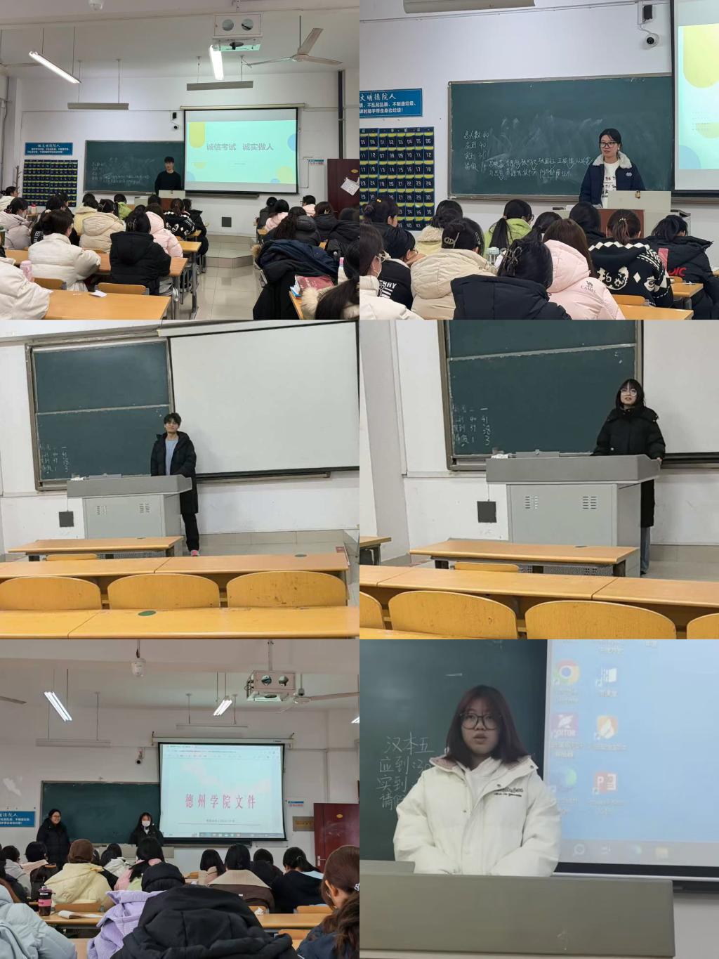 各班级召开“诚信立身・诚信立学”主题班会,深入学习《太阳集团tyc151cc员工违纪处分条例》。各班代表结合自身感悟分享心声,师生共同参与文件解读、现实案例剖析环节,在互动交流中持续强化全体员工的规则意识。同学们郑重签署《诚信考试承诺书》,各班推荐代表针对诚信考试进行表态,以庄重的仪式感固化诚信承诺,让“守信应考”的理念入脑入心。通过微信公众号、班级群等渠道同步推送警示清单与纪律要求,增强员工对考试纪律的敬畏意识。