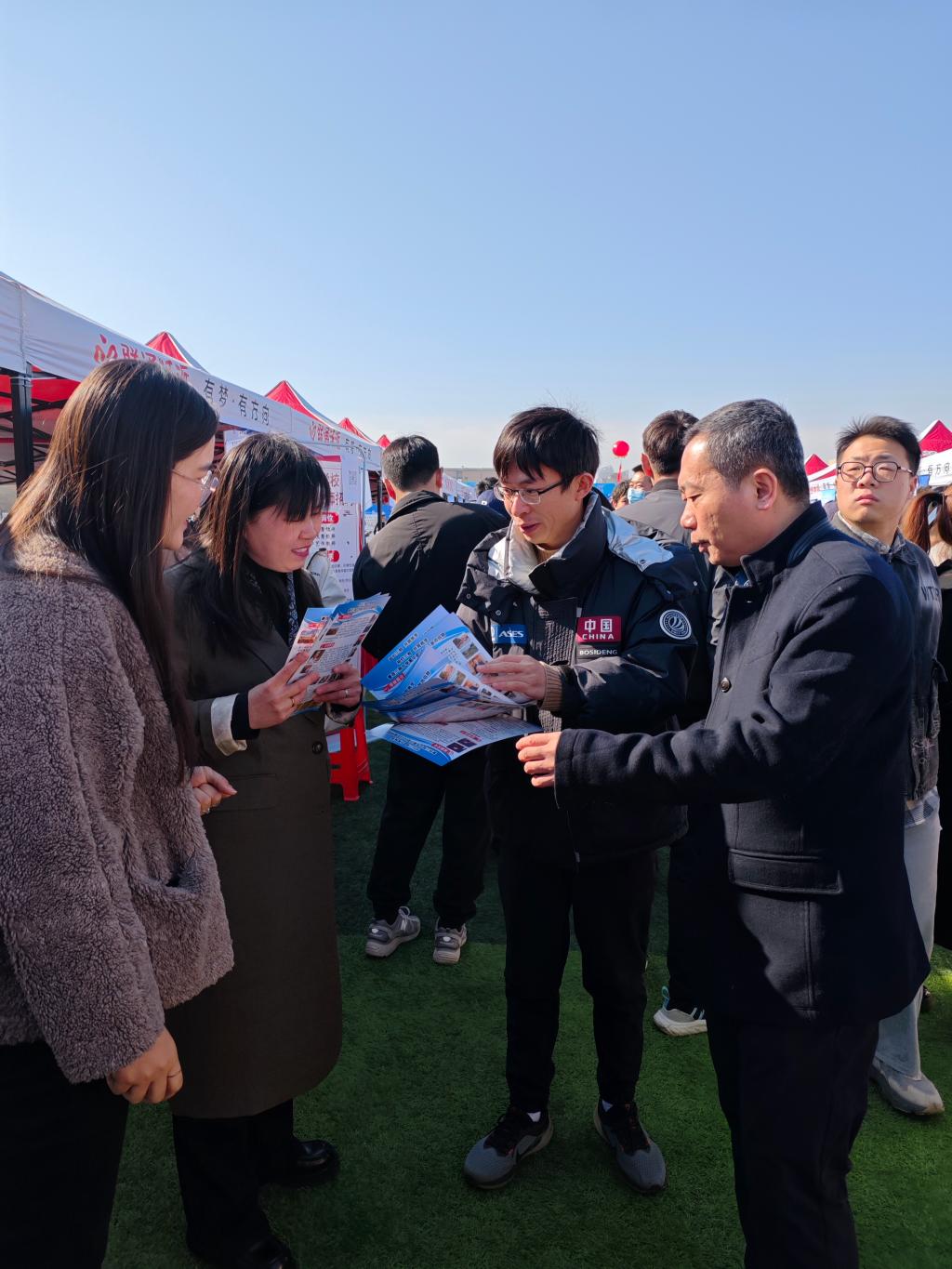 招聘会现场气氛热烈,人流涌动。此次招聘会吸引了众多用人单位参与,提供的岗位丰富多样,充分覆盖了公司各学历层次员工。参会企业岗位分布领域广泛,平均薪资待遇优厚,涵盖教育、文化传媒、出版编辑、行政管理等多个行业,其中师范类岗位占比较高,与公司汉语言文学(师范)、新闻学等专业高度契合。为毕业生们提供了多元化的职业选择。公司党委书记仲冲、公司党委副书记副经理黄传波、公司党委副书记鞠晶晶、公司副经理马超、辅导员刘娟、张亮、沙彦君到达现场,指导员工投递简历,并与用人单位的人才需求、校企合作等展开交流。