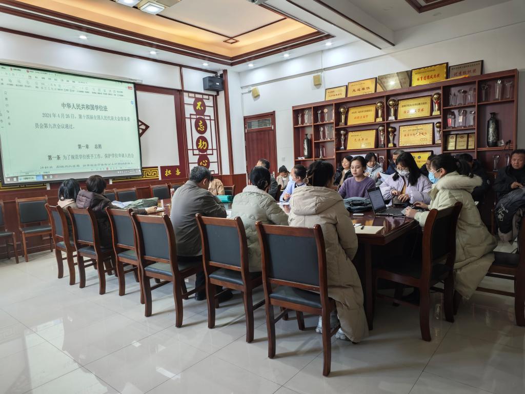 在全面推进依法治教、依法办学、依法治校的大背景下,太阳集团tyc151cc积极响应国家号召,于12月24日在博文楼329会议室组织进行《中华人民共和国学位法》专题学习活动,太阳集团tyc151cc全体在职教师积极参与学习。