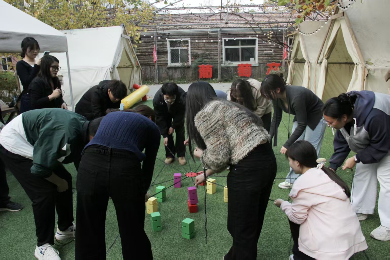 活动当天,老师明确介绍各参访点位的核心学习目标,同学们沿着 “地域文化 — 生态历史 — 民间传说 — 产业变迁” 的研学脉络展开探索。在杨家圈文创园,同学们通过老建筑改造的实景,感受以京杭大运河文化为根基的设计理念,深化了对运河文化德州段历史底蕴的认知;在九龙湾公园,大家沿河而行,了解德州近年来在水资源保护、生态修复方面采取的措施,真切感受到生态变迁对城市发展的影响;走进四女寺风景区,古建筑间流传的“四女孝亲”故事,让道德教诲变得亲切可感;踏入奥德曼酒庄,同学们在工作人员的讲解下了解到葡萄酒产业的发展历程,感受葡萄酒文化的独特魅力。同学们还参加了酒庄营地的团建游戏,分组参与“骑毛毛虫”“合力建塔”和拔河比赛,欢笑声中凝聚了团队协作的默契。