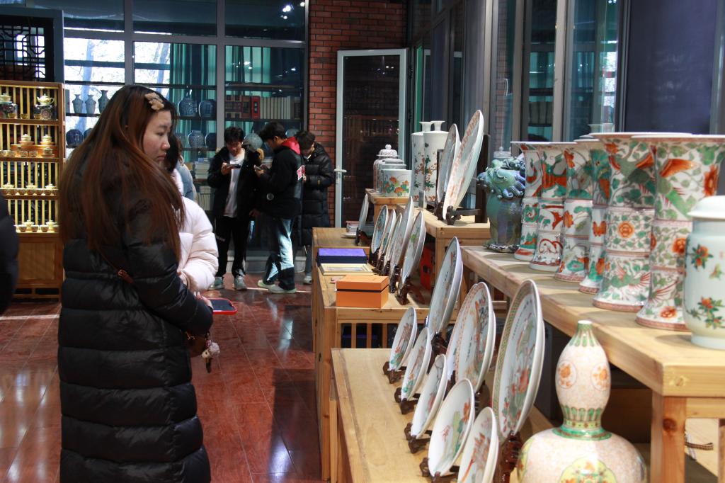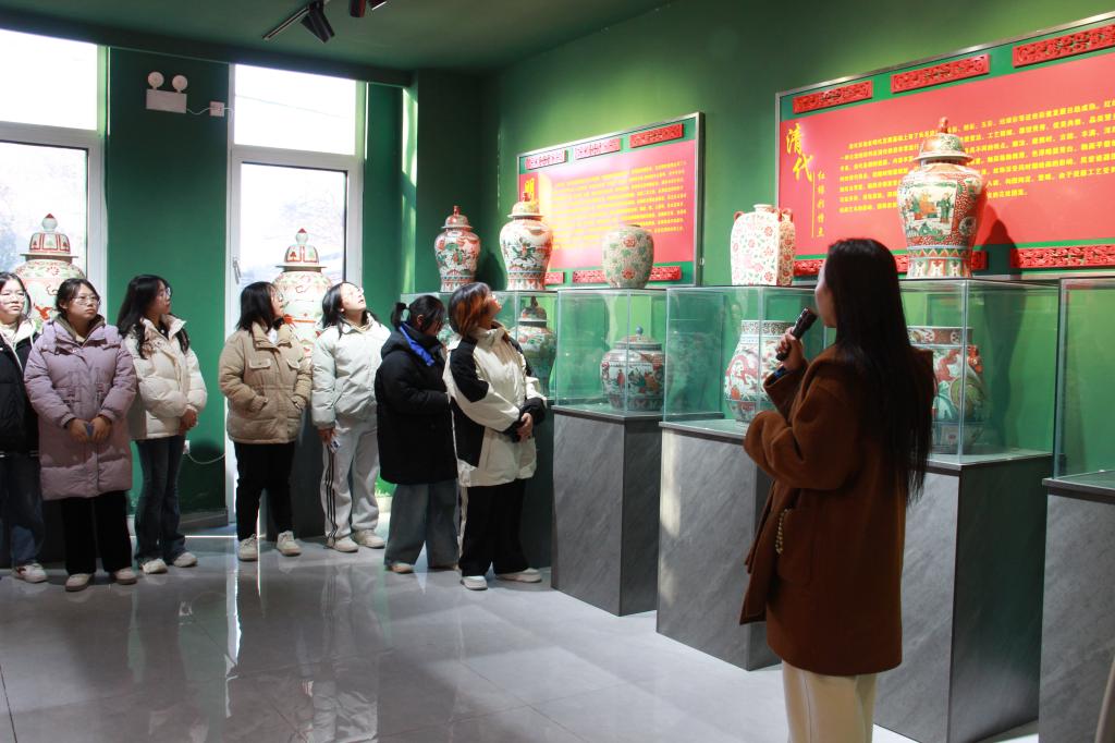 离开古街后,师生们来到德州市宋金红绿彩博物馆。作为“中国北方民窑代表”,这里陈列着宋金时期红绿彩瓷片、完整器物及现代复刻作品,色彩浓烈的牡丹纹、灵动的人物造型,在灯光下焕发着鲜活的生命力。在讲解员的引导下,员工们深入了解了红绿彩“以釉上彩绘为核心”的工艺特点,并参观了创作室。