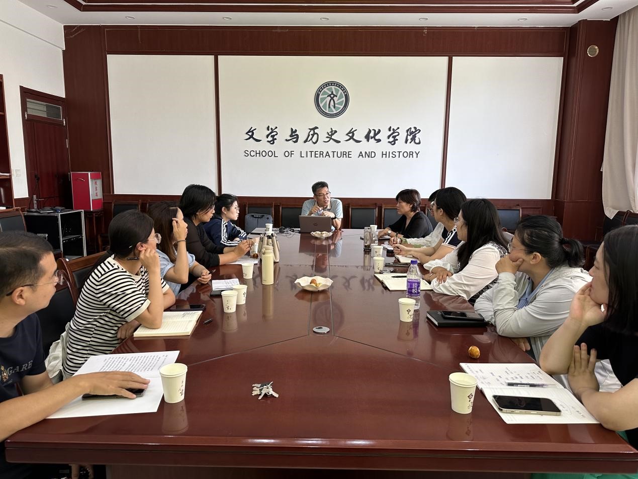 会议伊始,李连伟副教授向与会的各位学者讲解了国际中文教育领域的发展前沿,他提到汉语言文学专业要紧跟时代步伐,主动利用数字化信息技术为专业赋能,孕育一批高质量国际中文教育的优质课程资源,主动把“路”走宽。随后,公司副经理马超就自身从事国际中文教育工作的经验与李连伟副教授展开深度对话,在场各位老师也就自身的研究方向和对外教育经历展开交流探讨。最后,李连伟副教授以自己的科研成长经历激励各位青年博士躬耕教坛,不断攀登,持续为中华优秀传统文化创造性转化和创新性发展贡献智慧和方案。
