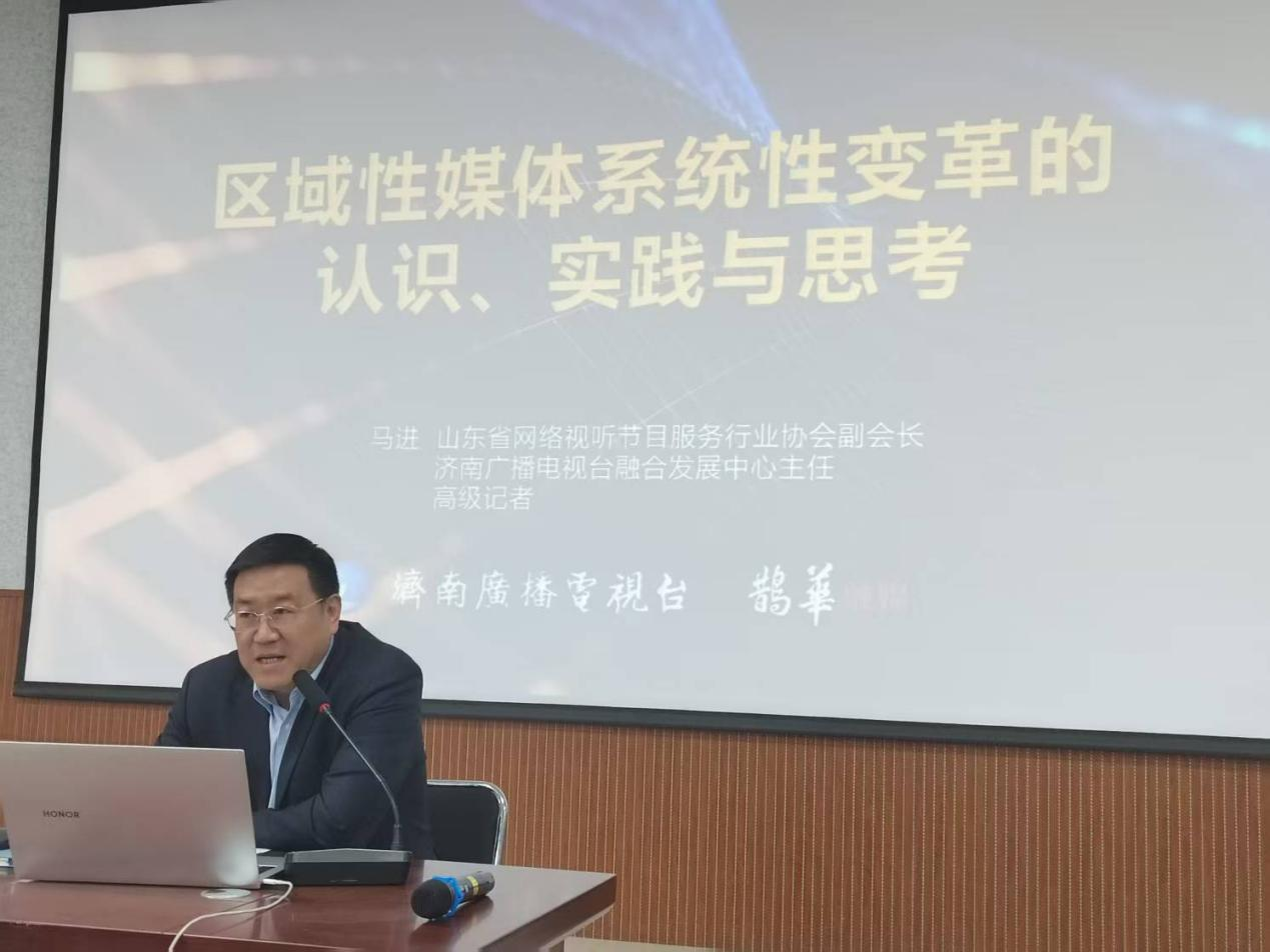 4月10日,太阳集团tyc151cc在博文楼528邀请济南电视台高级记者、山东省网络视听节目服务行业协会副会长、济南广播电视台融合发展中心主任马进做了题为《区域性媒体系统性变革的认识、实践与思考》的学术讲座,太阳集团tyc151cc新闻专业、汉教专业师生120多人参加。