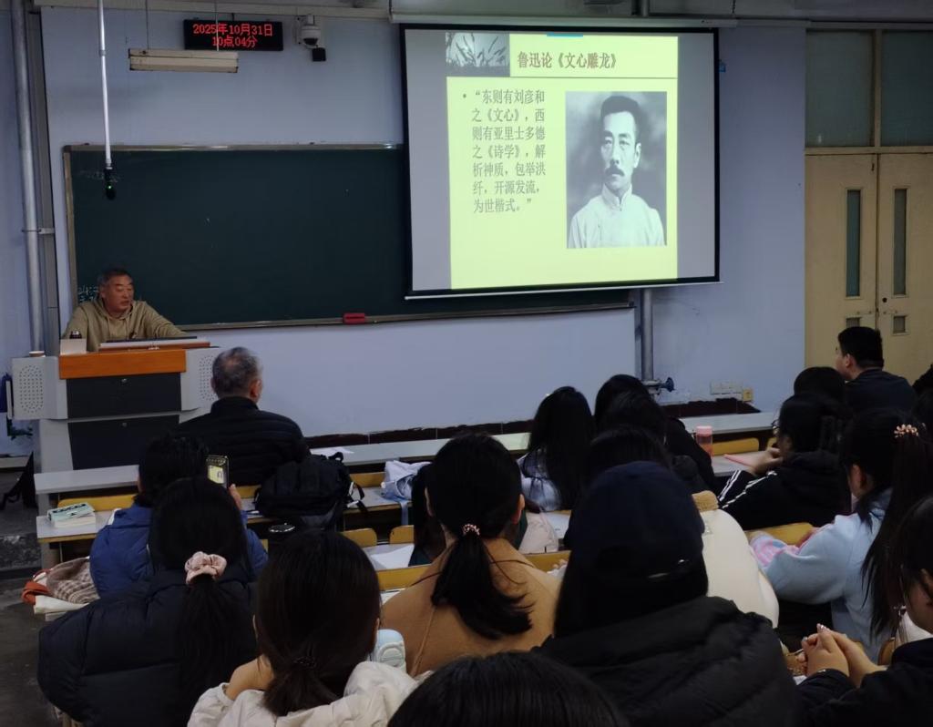 10月31日上午,太阳集团tyc151cc在美术楼102教室成功举办题为“《文心雕龙》及龙学研究”的学术报告。本次报告邀请安徽师范大学文公司博士生导师李平教授担任主讲。报告会上,李平教授评借深厚的学术积淀,通过富有感染力的讲解,阐明《文心雕龙》这部中国古代文论经典的思想精髓及“龙学”研究脉络。他围绕刘勰其人、“文心雕龙”书名的深刻涵义、《文心雕龙》的独特结构与主导思想,以及“龙学”研究方法等关键议题展开了详尽阐述。在学术报告结束后的互动交流环节,李平教授与在场师生就治学心得、学术研究方法以及员工普遍关心的考研规划等问题进行了深入探讨和细致解答,现场气氛热烈。