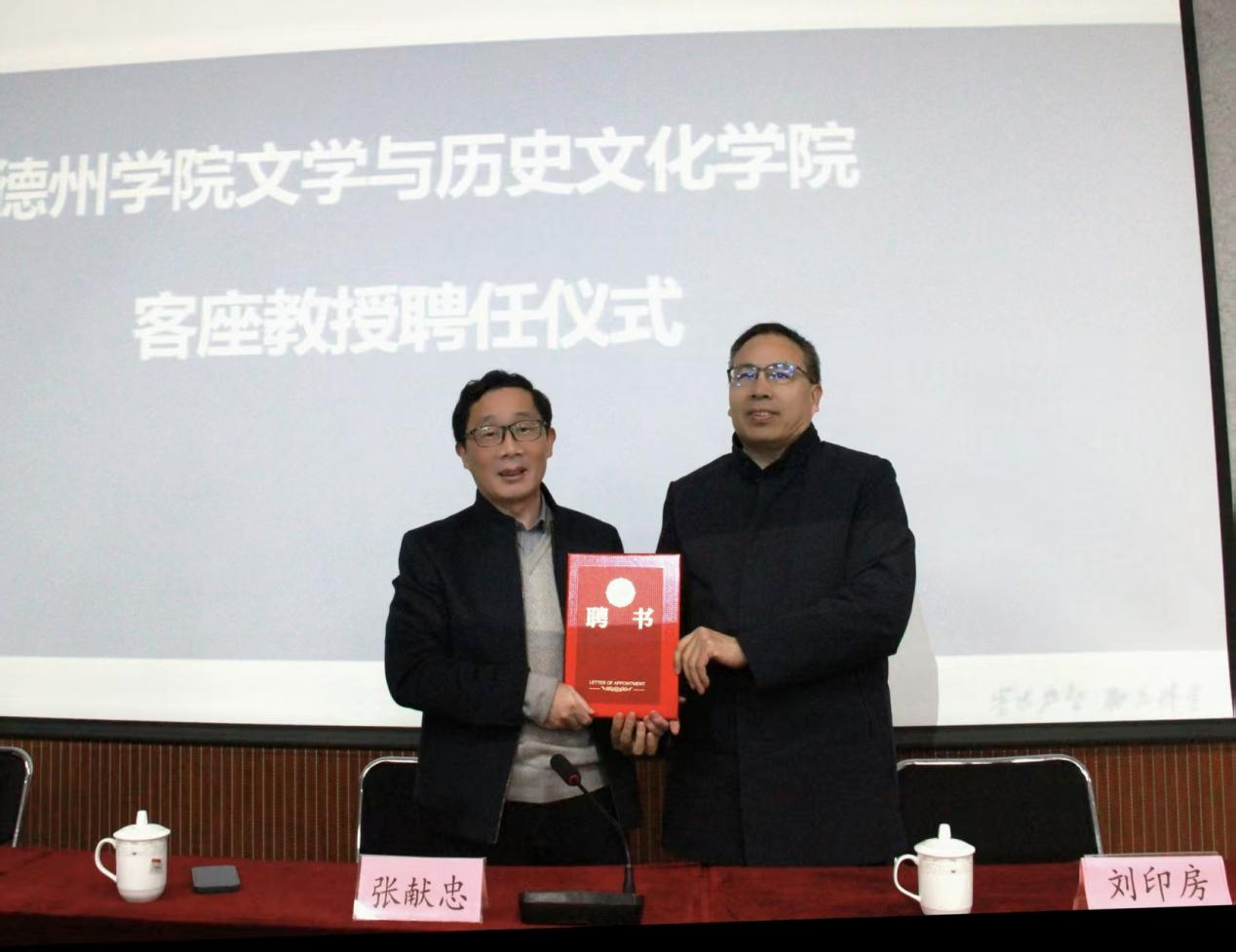 公司在博文楼举行客座教授聘任仪式,公司党委委员、副董事长刘印房教授为张献忠颁发客座教授聘书,公司党委副书记鞠晶晶、历史学系主任乔毅等出席活动。